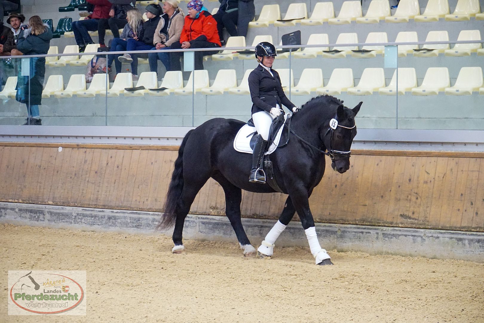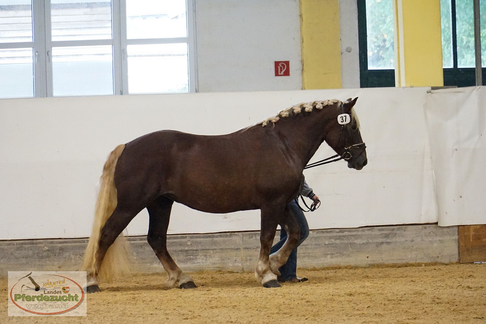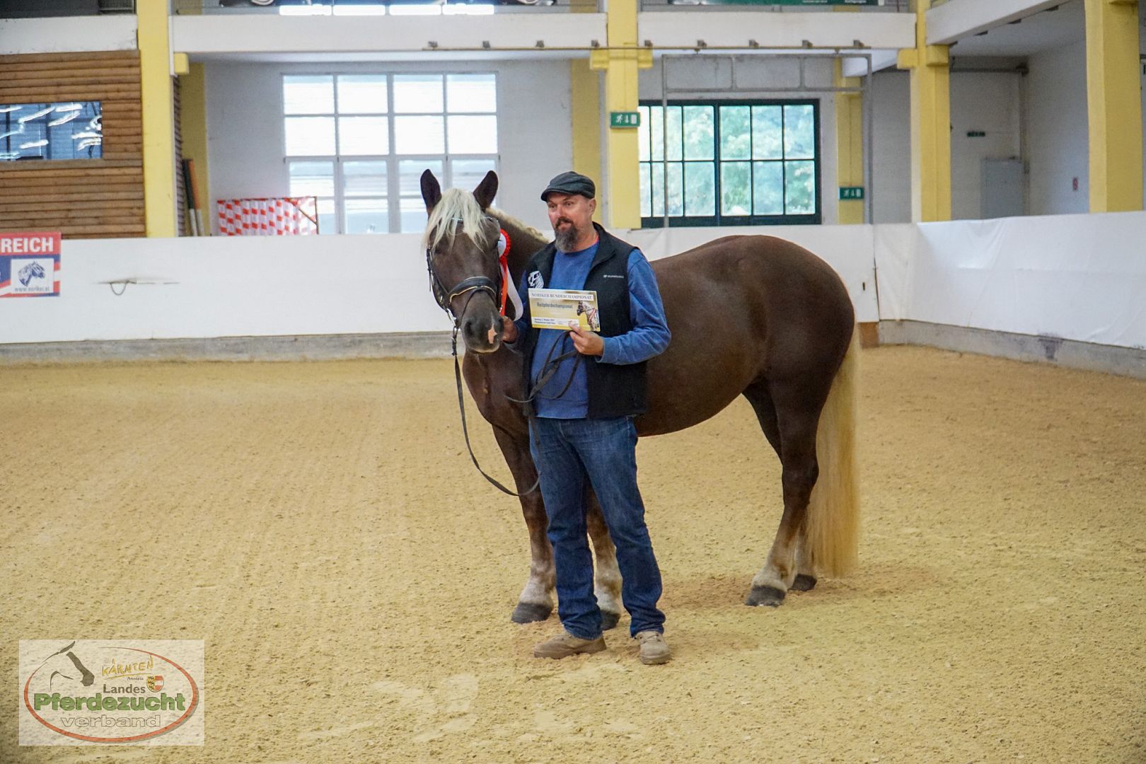 Gezogen nach Galvano Vulkan XV aus der Holly Schu n. Justus Elmar XIV wurde er gezüchtet von Werner Godez, Feistritz/Gail und steht wie bereits eingangs erwähnt im Besitz des Landes-Pferdezuchtverbandes Kärnten. Seinen ersten Deckeinsatz verrichtete der Junghengst 2025 auf der Deckstation von Reinhard Gesson, welcher die Ausbildung dieses Junghengstes ebenfalls sehr förderte. Der Junghengst zeigte sich während der Prüfung zu jeder Zeit bestens an den Hilfen seiner Reiterin, präsentierte sich schon sehr gut ausbalanciert und überzeugte vor allem mit seiner elastischen und schwungvollen Trabbewegung. Für diese sehr harmonische Vorstellung gab es die verdiente Siegerschärpe und die Gesamtnote von 8,30.
