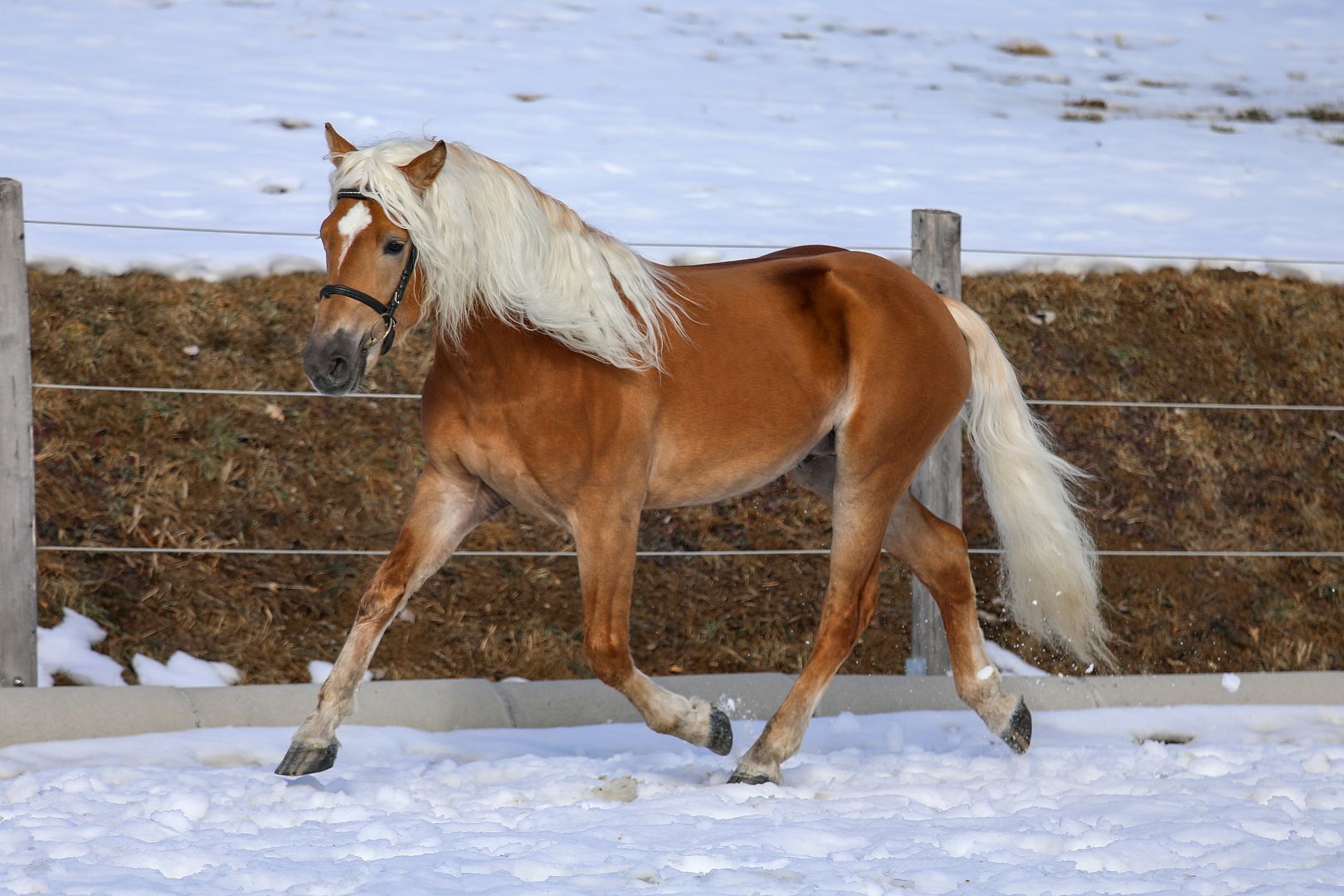 Sky wurde anlässlich der Kärntner Haflinger Fohlenschau 2023 vom Landes-Pferdezuchtverband Kärnten für die Aufzucht am Ossiacher Tauern angekauft. Der Sommerhit-Sohn aus der Staatsprämienstute Tabita nach Atlantic gezogen zeigt sich genügend entwickelt, mit gutem Rassetyp ausgestattet bei schöner Körperharmonie. Punkten kann dieser 3-jährige Junghengst vor allem mit seiner guten, elastischen und bergaufgerichteten Trabbewegung und seinem sehr gut schreitenden Schritt.