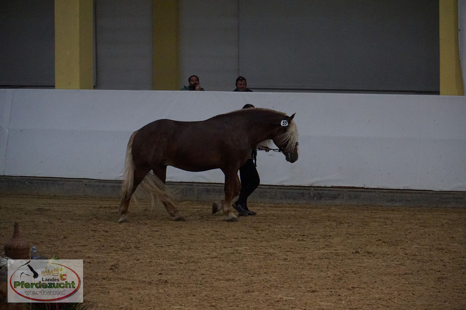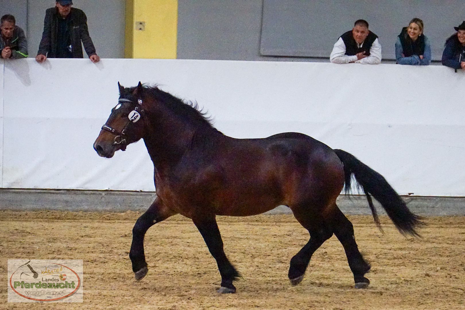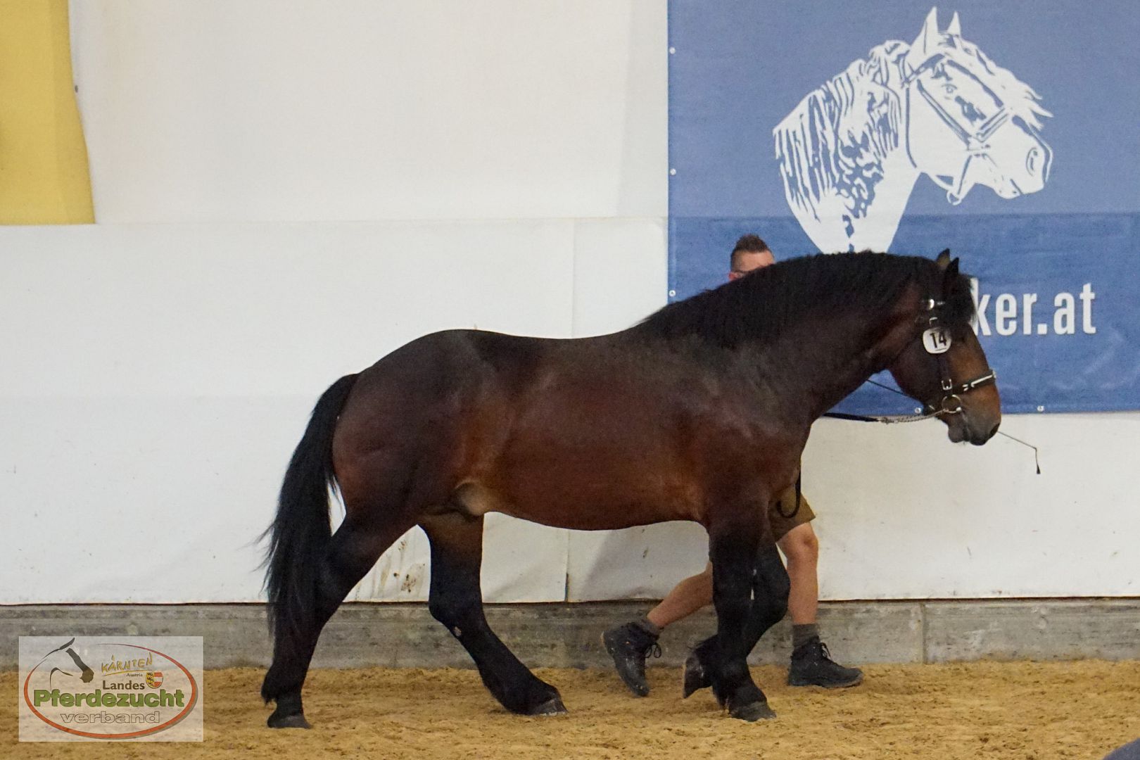 Väterlicherseits über Mykonos Diamant XIII (KB.) und Schlern Vulkan XVII (DB.) gezogen. Mutter ist die Staatsprämienstute Baronesse-Starlet n. Stirn Vulkan XVII (B.) und PrH. Edelweiß Nero XII (R.). Sie erreichte bei der Landesjungstutenschau 2016 in St. Donat den Endring und wurde anlässlich der Bundesjungstutenschau 2016 als Endringstute mit der Schauklasse 1b prämiert. Züchter dieses vielversprechenden, kastanienbraunen Junghengstes sind Michaela & Bernhard Striedner aus Görtschach, Besitzer der LPZV Kärnten. Mynos Diamant XIV, im gutem Rasse- und Geschlechtstyp stehend, ist ein sehr ausdrucksstarker, formschöner und ansprechender Junghengst mit einem soliden Fundament. Seine Halsung ist sehr gut aufgesetzt bringt viel Schwung und Länge mit. In seinen Bewegungsabläufen zeigt er sich sehr locker, leichtfüßig und elastisch sowie gut über den Rücken schwingend. Der Schritt ist gut ergiebig und fleißig durch den Körper schreitend. Mit den Maßen 162/172/197/23 erhielt er die Wertnote 7,68 und wurde am 7. Platz ex. platziert. Dieser linientechnisch sehr wertvolle, moderne und bewegungsstarke Junghengst wird seinen Dienst auf der Deckstation von Reinhard Gesson, vlg. Korischem, in Eberstein verrichten.