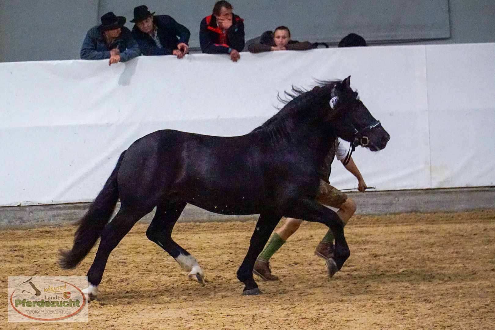 Das Reglement der Zuchtbuchordnung sieht vor, dass die gekörten Hengste zunächst in das sogenannte Testhengstbuch eingetragen werden. Erst mit der erfolgreich abgelegten, stationären Hengstleistungsprüfung steigen sie in das Haupthengstbuch auf. In diesem Jahr fand zum ersten Mal der Freilauf bereits am Freitagabend statt, da die Rekordanmeldezahl von 56 Hengsten, den Freilauf am Samstag zeitlich nicht möglich machte.