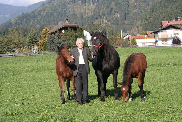 „Mein Vater hat mir sehr viel beigebracht, trotzdem bleibt seine Gabe, nämlich das Potenzial die passenden Jungtiere zu erkennen, fast einzigartig“ schwärmt Angela Mosser, wenn sie von ihrem Vater spricht. Matthias Mosser hat über die Jahre mehr als 40 Hengste aufgezogen. Dies anfangs in Zusammenarbeit mit dem Landes-Pferdezuchtverband Kärnten und dann auch zuhause auf seinem Hof. Einige davon stammten auch aus eigener Zucht. Aus diesen verschiedensten Jungtieren entstanden in den Jahren viele gekörte Hengste, die noch heute in vielen Pedigrees verewigt sind.