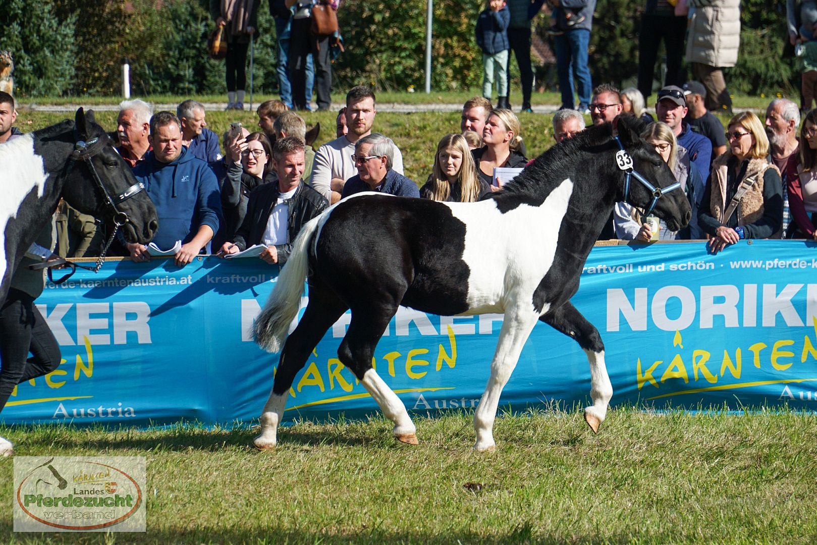 Das teuerste Stutfohlen dieser Auktion war ein wunderschönes Stutfohlen mit Sonderlackierung. Bestens herausgebracht verzauberte das gut konstruierte Rappscheckstutfohlen aus der Zucht von Daniel Glantschnig, Mallnitz, die Käufer. Mit dem sehr guten Preis von netto Euro 4.000,00 wechselte Mira ihren Besitzer und darf von nun an im Stall von Sebastian Gollenz, Malta, ihre weitere Aufzucht verbringen. Sehr erfreulich ist es auch, dass viele gute Fohlen den Besitz innerhalb von Kärnten wechselten.