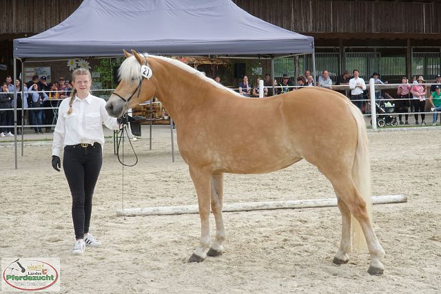 Ganz knapp dahinter platzierte sich eine weitere dreijährige Jungstute, ebenfalls nach dem Hengst Stale gezogen wie auch die oben erwähnte Siegerstute. Beverly aus der Zucht und im Besitz von Wolfgang Nepraunig, Arnoldstein, präsentierte sich von ihrer besten Seite und überzeugte mit viel Weiblichkeit und Charme. Die modern konstruierte Jungstute misst 151 cm und besticht vor allem mit guten Körperverbindungen und schöner Aufmachung. Der taktsichere und schreitende Schritt gehört genauso zu ihren Stärken wie eine gute Bewegungsmechanik im Trab bei korrektem Fundament. Beverly sicherte sich somit die ausgezeichnete Wertnote von 8,00 und den zweiten Platz an diesem Tag.