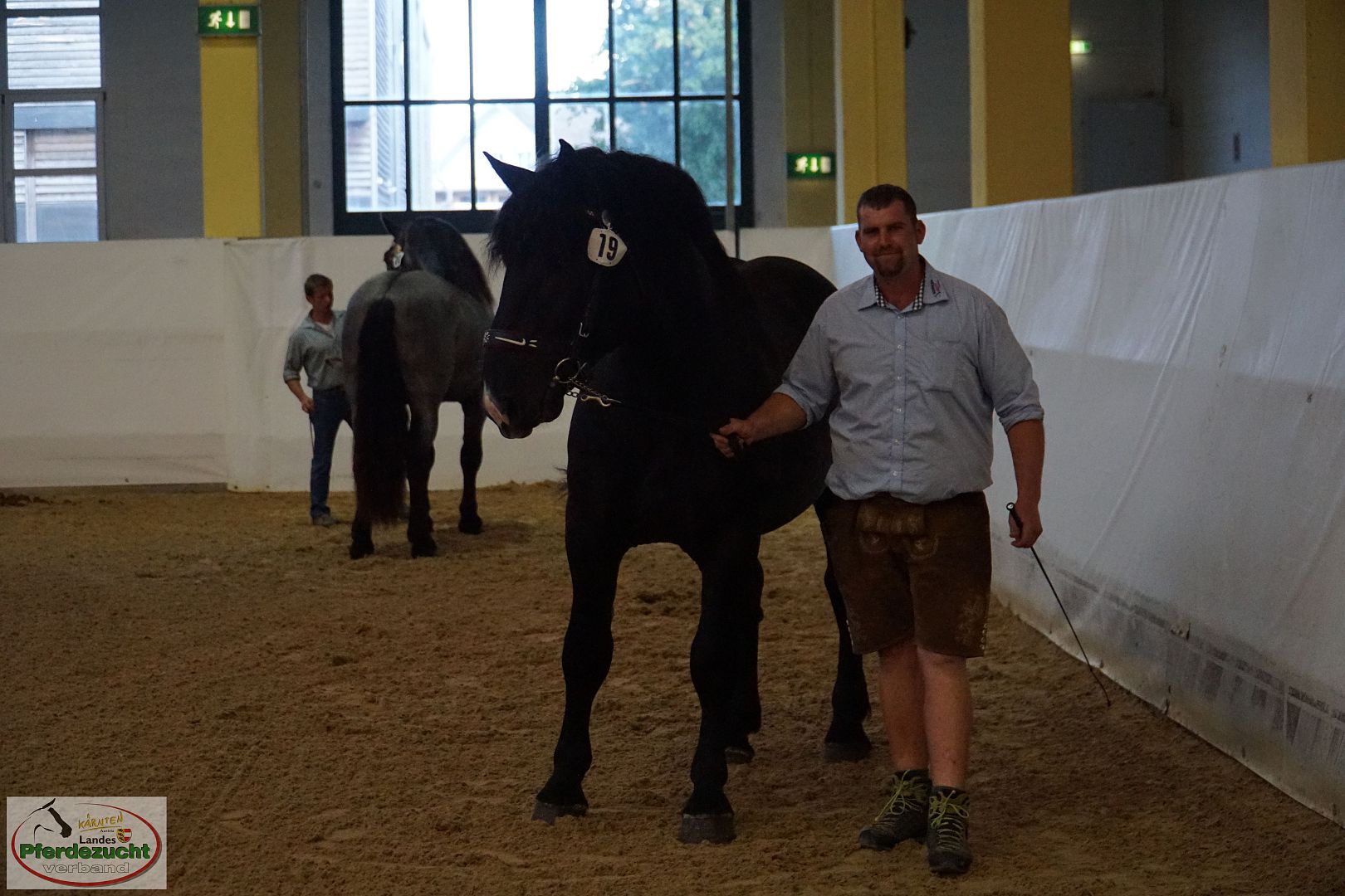 Der formschöne, mit viel Adel ausgestattete Rapphengst ohne Abzeichen überzeugte durch sehr guten Rasse- und Geschlechtstyp, mit einem rassetypischen, formschönen Kopf, einem harmonisches, gut proportionierten Gebäude und einem korrekten Fundament. Im Schritt zeigte er sich fleißig und taktsicher mit viel Raumgriff, der Trab ist mit guter Elastizität und gutem Schub ausgestattet. Sein Vater ist Eisenhut Nero XIV und die Mutter, die Staatsprämienstute Melissa, ist nach Mentor Nero XV und Taurus Vulkan XVI gezogen. Stolzer Züchter ist Erwin Possegger, vlg. Oberwinkler, aus Ferndorf und Besitzer der LPZV Kärnten. Seine Maße sind 164/175/205/24. Der mit einer Wertnote von 7,95 platzierte 2. Körungsreservesieger wurde an den Landespferdezuchtverband Steiermark verkauft und wir wünschen unseren Züchterkollegen alles Gute mit diesem überzeugenden Hengst.