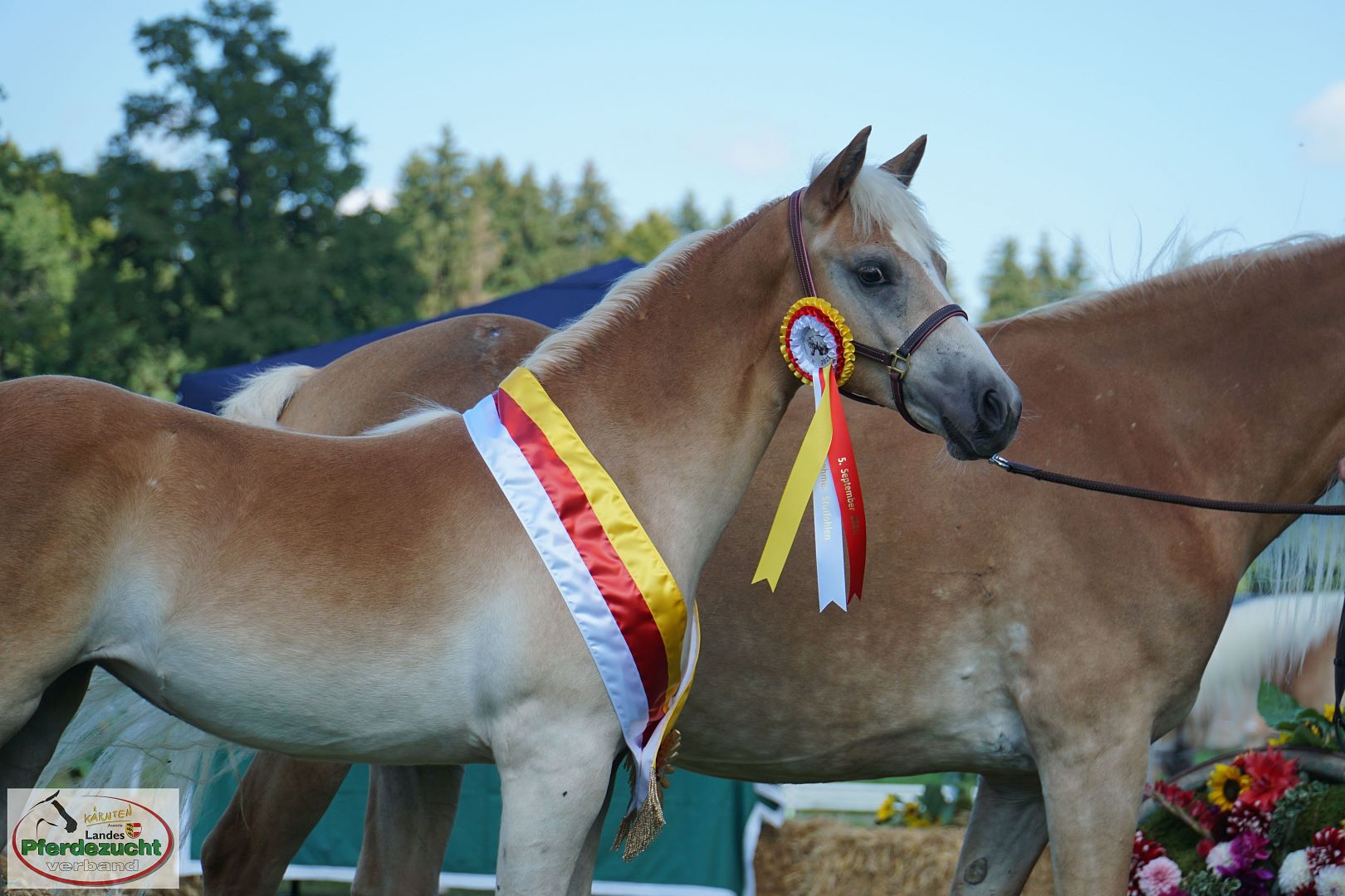 Zum Siegerfohlen auserkoren wurde Amara GK. Die sehr weibliche, charmante und typvolle Tochter des Hengstes Walescano und der Staatsprämienstute Ariane nach Belando stammt aus der Zucht und steht im Besitz der ZGM Grilc-Kokovica aus Feistritz ob Bleiburg. Somit geht auch die zweite Siegerschärpe an diesem Tag nach Unterkärnten. Amara GK überzeugte in allen Einzelkriterien und punktete mit viel Eleganz und einem korrektem Fundament. Mit ihrer sehr guten, elastischen und raumgreifenden Trabbewegung setzte sie sich verdient an die erste Stelle und wurde mit der Siegerschärpe belohnt.