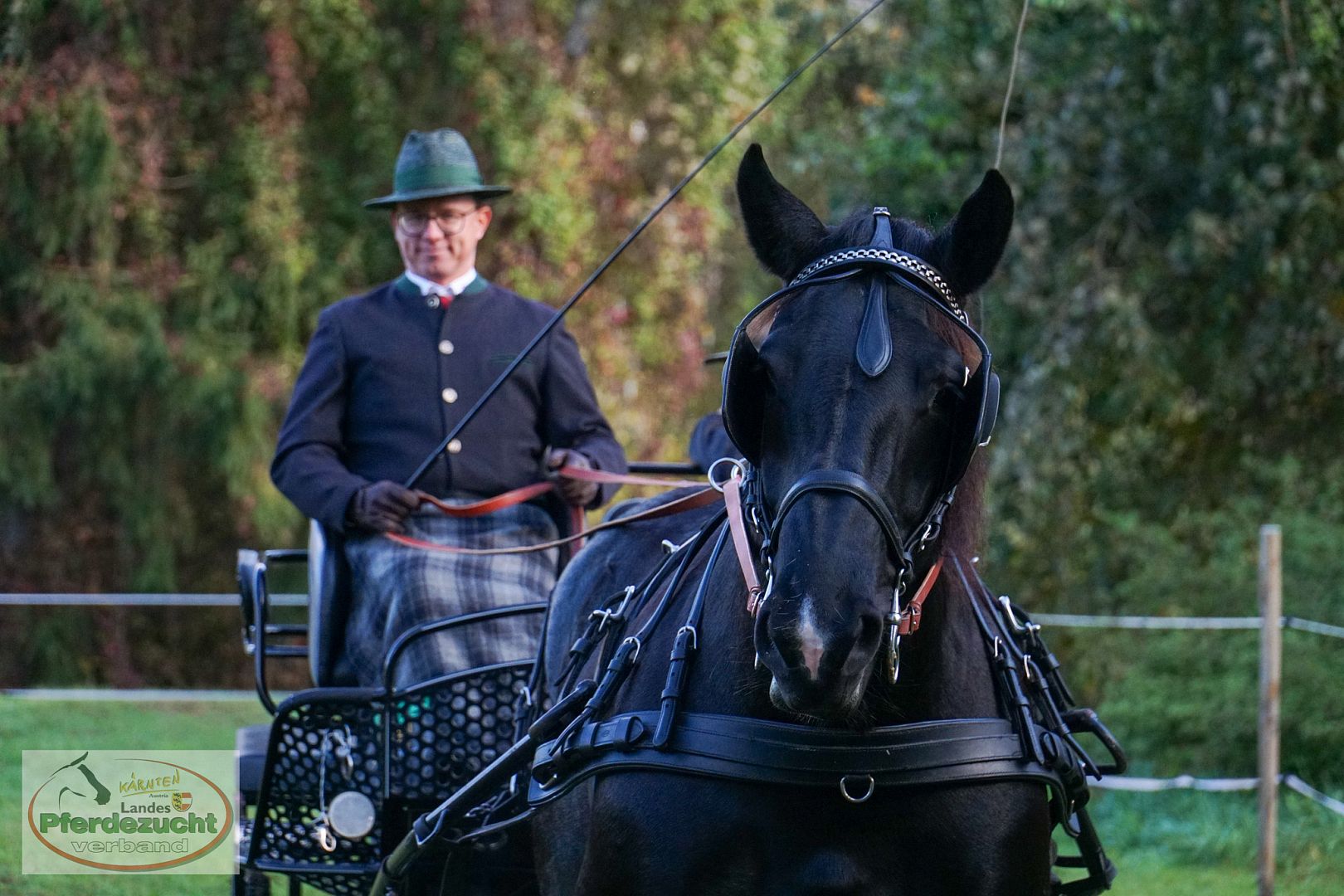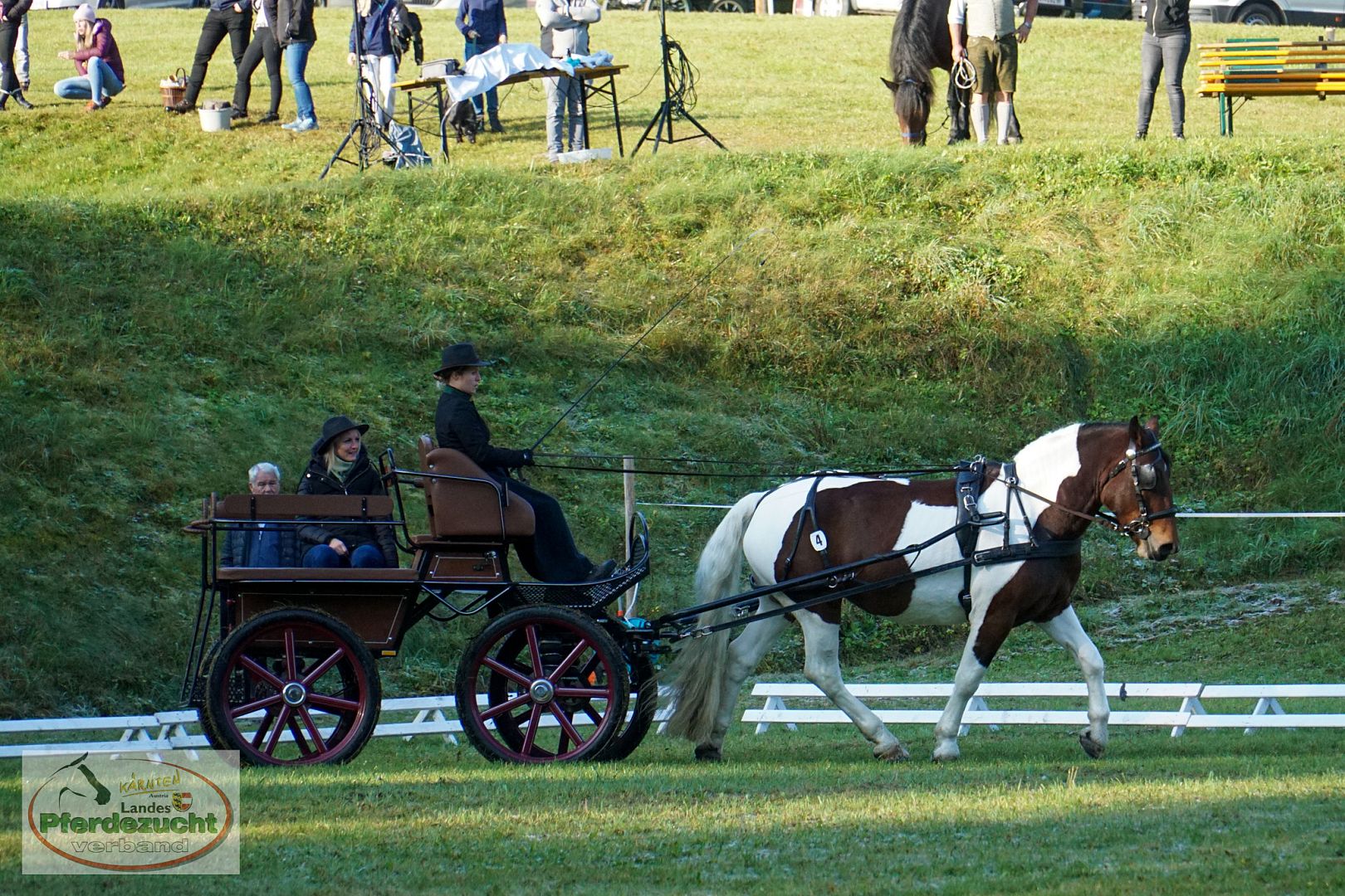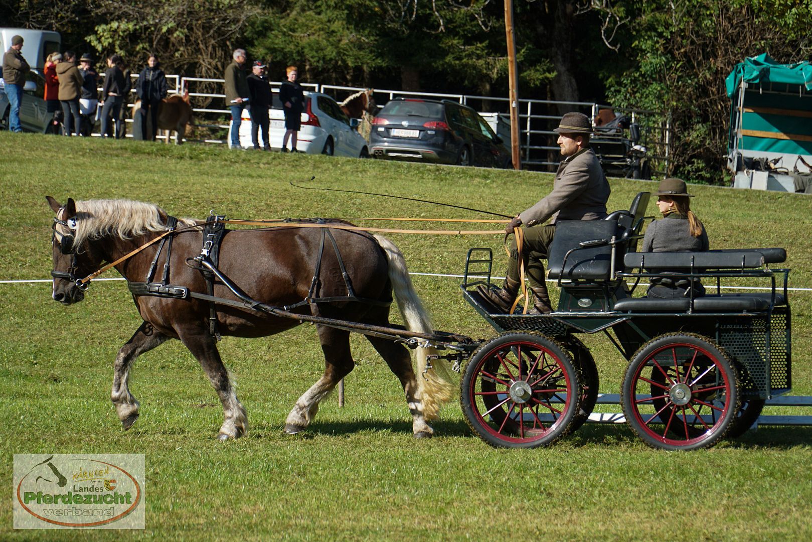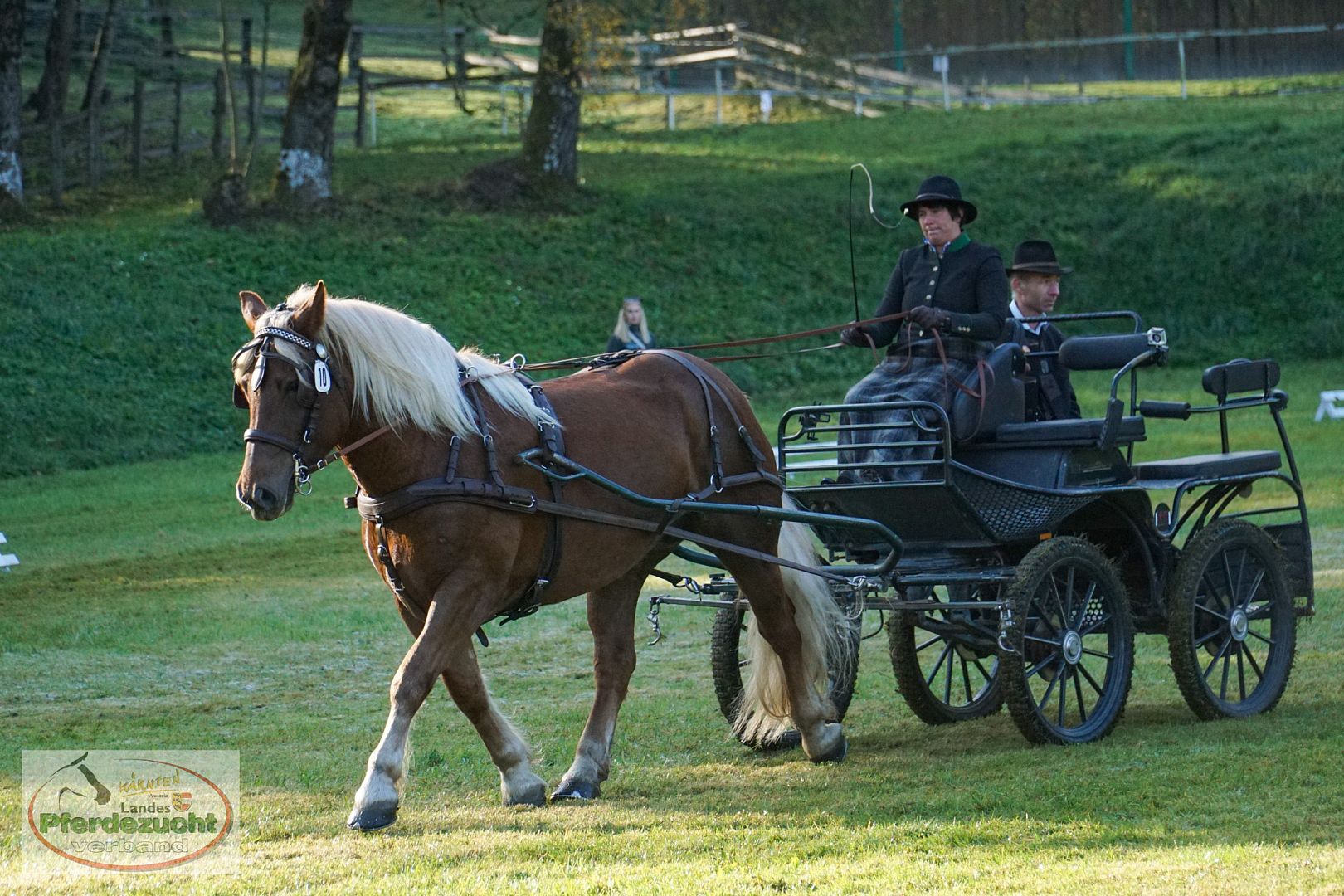 Im ersten Teilbewerb wurden die Grundgangarten, somit die Bewegungsmechanik der Pferde unter dem Sattel beurteilt. Gerichtet wurde dieser Bewerb von Ing. Manfred Lientschnig, Mario Niederdorfer, Dipl.-Ing. Dr. Andreas Zettl und dem Geschäftsführer des LPZV Thomas Striedner. Christina Obernosterer fungierte abermals als Fremdreiterin und nahm den Fremdreitertest ab (Rittigkeit) – diese war von der heurigen, ausgeglichenen Grundqualität der Stuten mehr als begeistert! Im Anschluss wurden die Pferde von den Fahrrichtern – wie oben bereits erwähnt – bei der Einspännerfahrprüfung beurteilt.