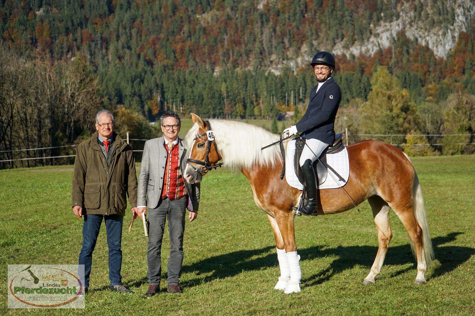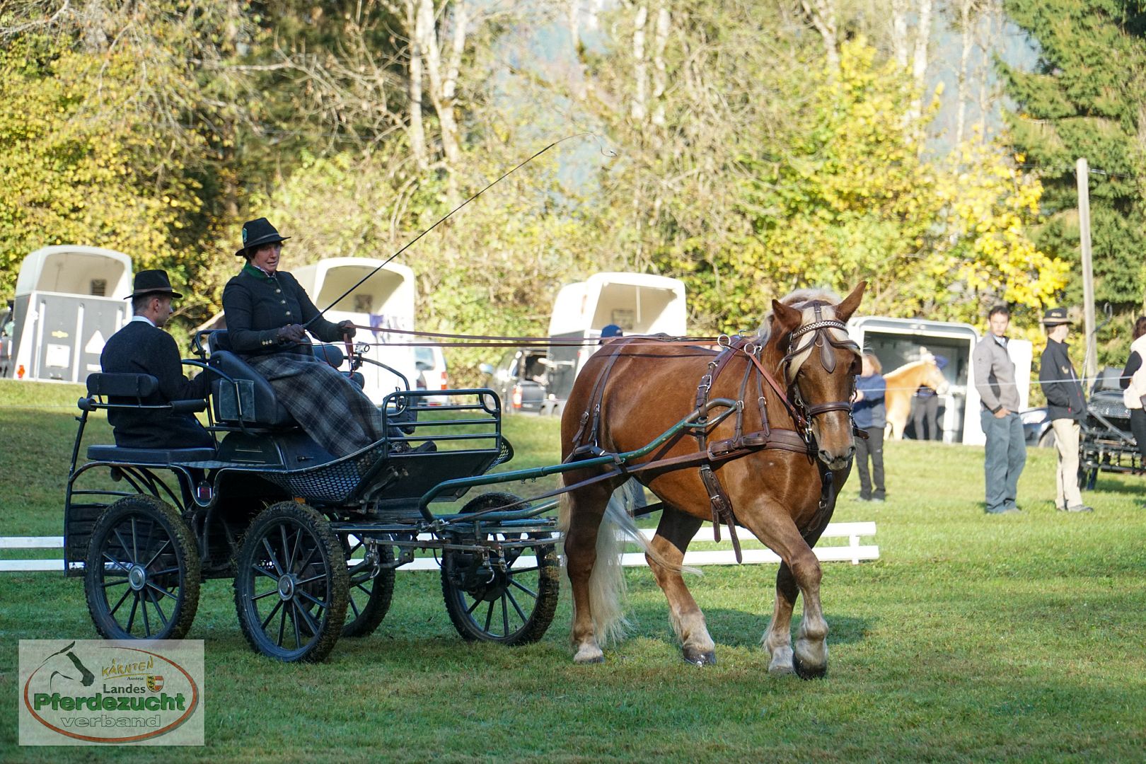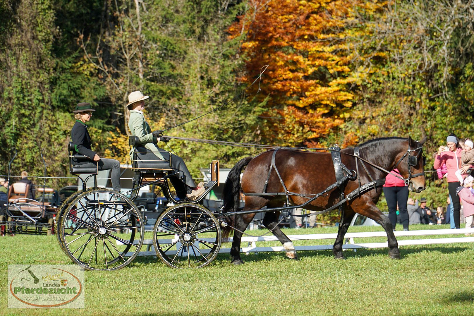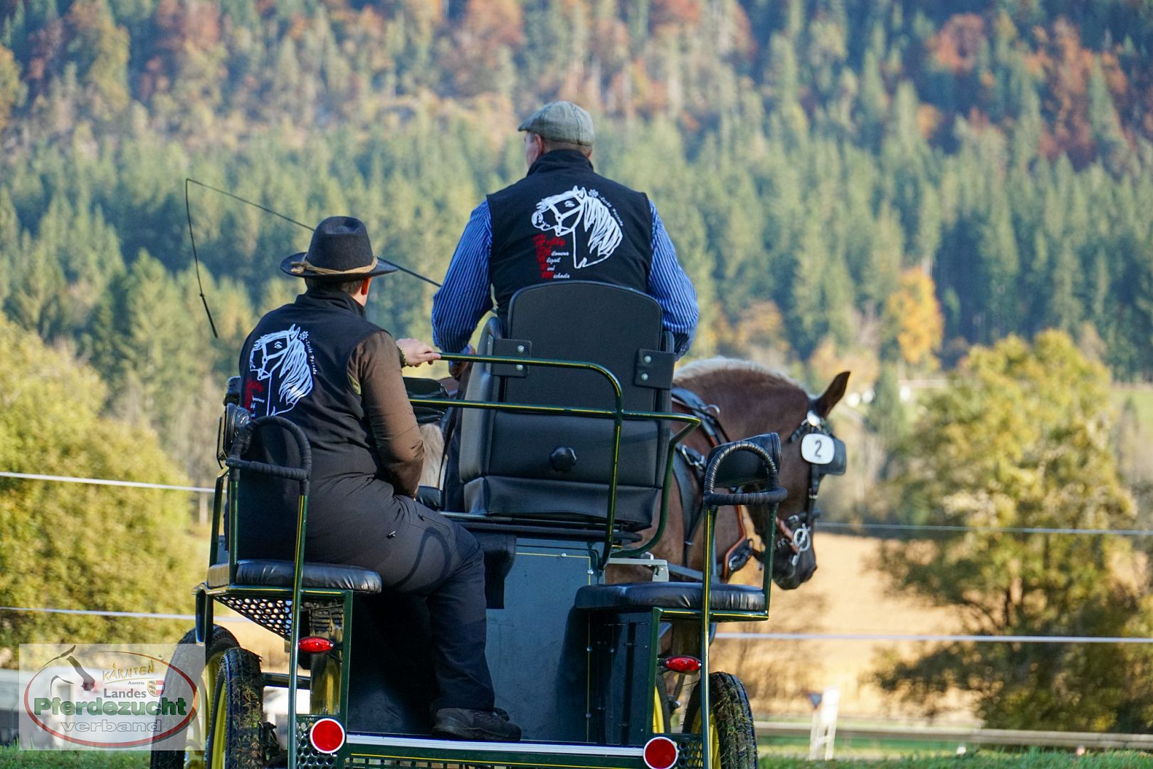 Im ersten Teilbewerb wurden die Grundgangarten, somit die Bewegungsmechanik der Pferde unter dem Sattel beurteilt. Gerichtet wurde dieser Bewerb von Ing. Manfred Lientschnig, Mario Niederdorfer, Dipl.-Ing. Dr. Andreas Zettl und dem Geschäftsführer des LPZV Thomas Striedner. Christina Obernosterer fungierte abermals als Fremdreiterin und nahm den Fremdreitertest ab (Rittigkeit) – diese war von der heurigen, ausgeglichenen Grundqualität der Stuten mehr als begeistert! Im Anschluss wurden die Pferde von den Fahrrichtern – wie oben bereits erwähnt – bei der Einspännerfahrprüfung beurteilt.