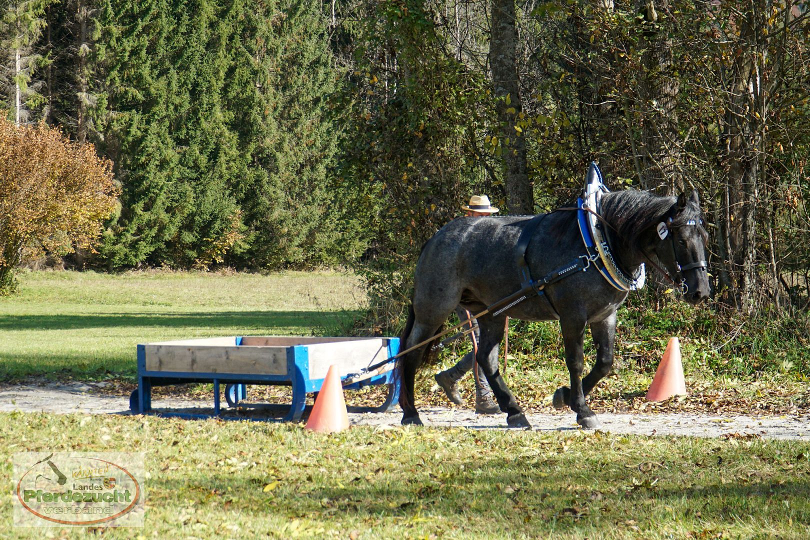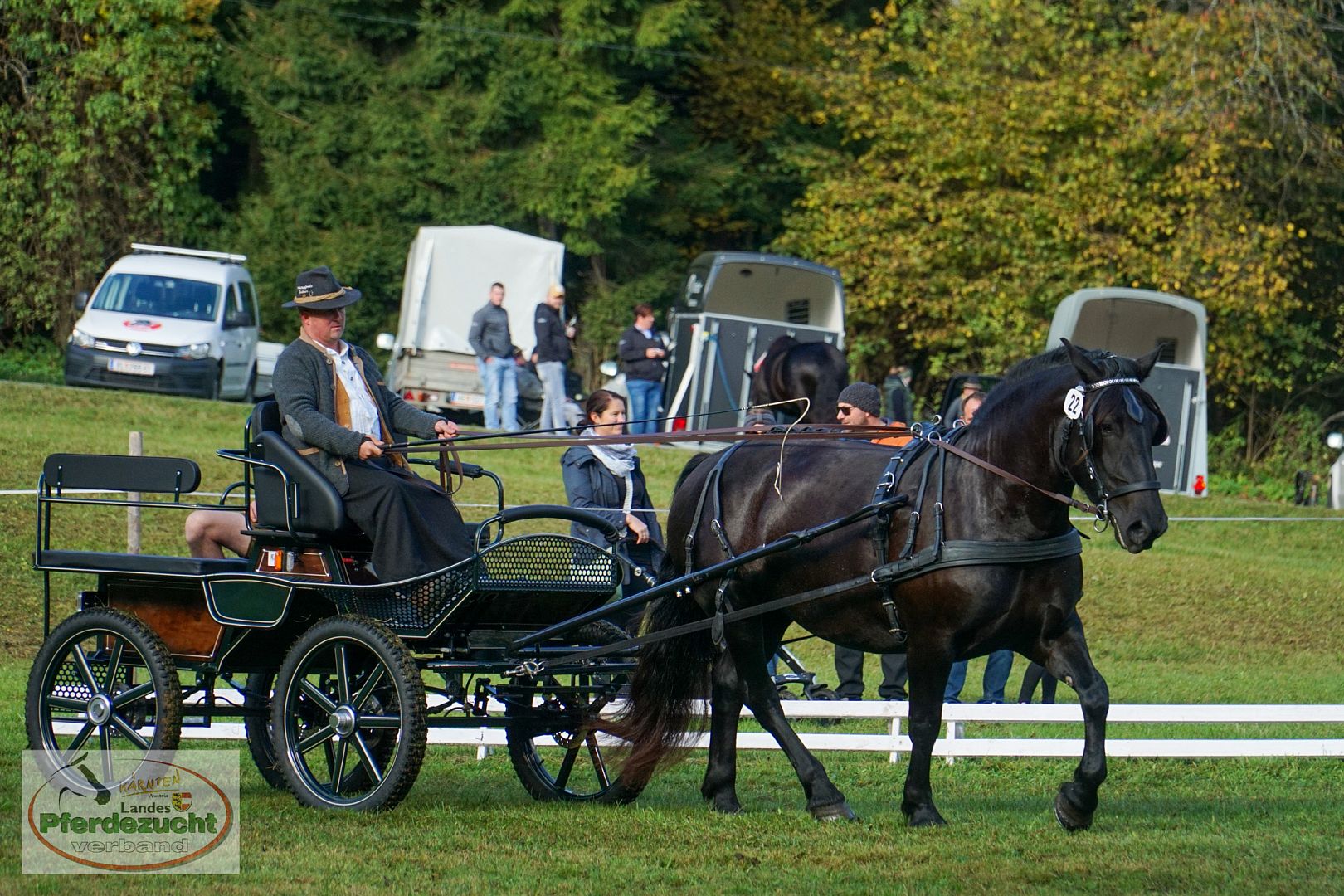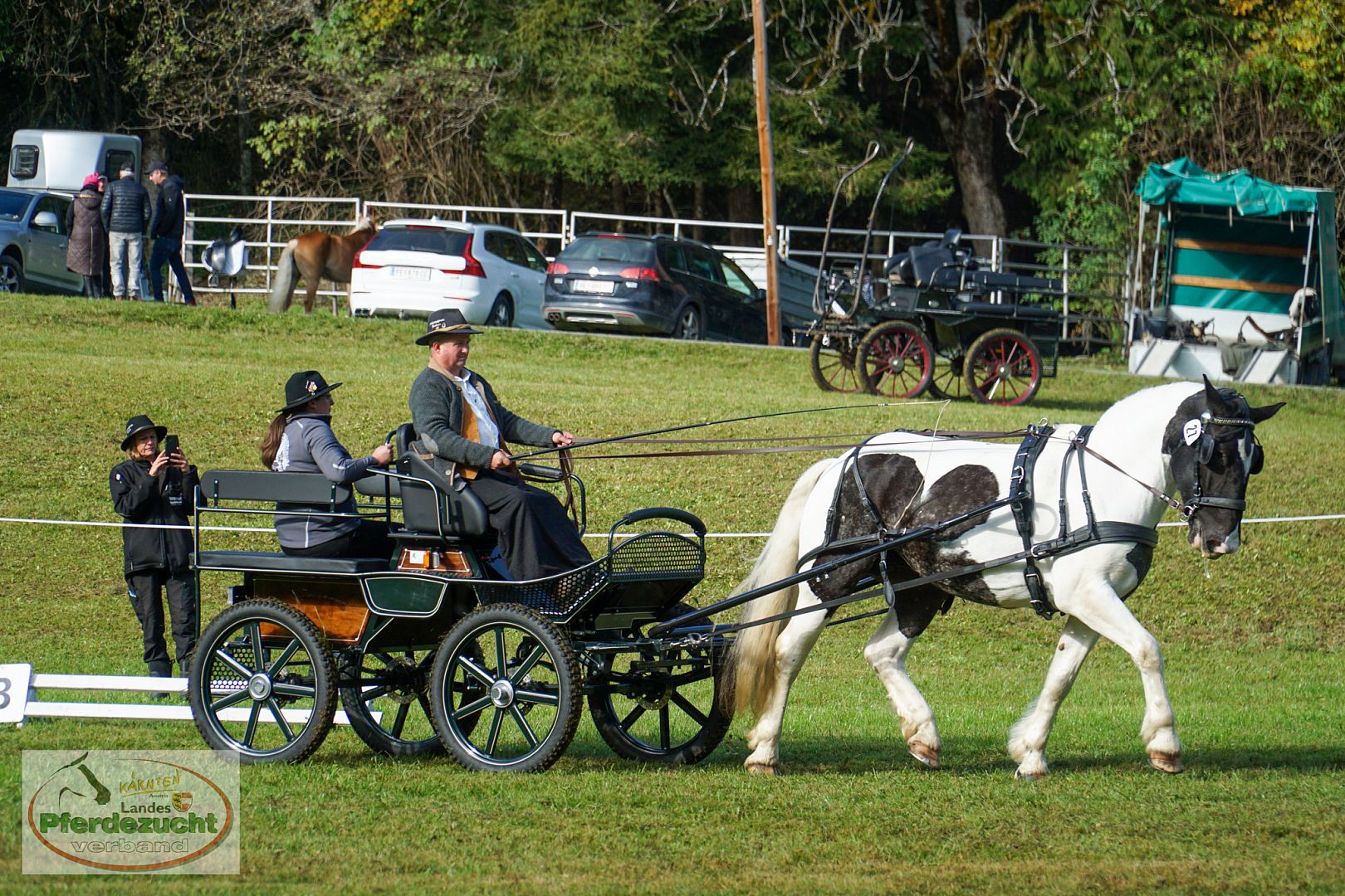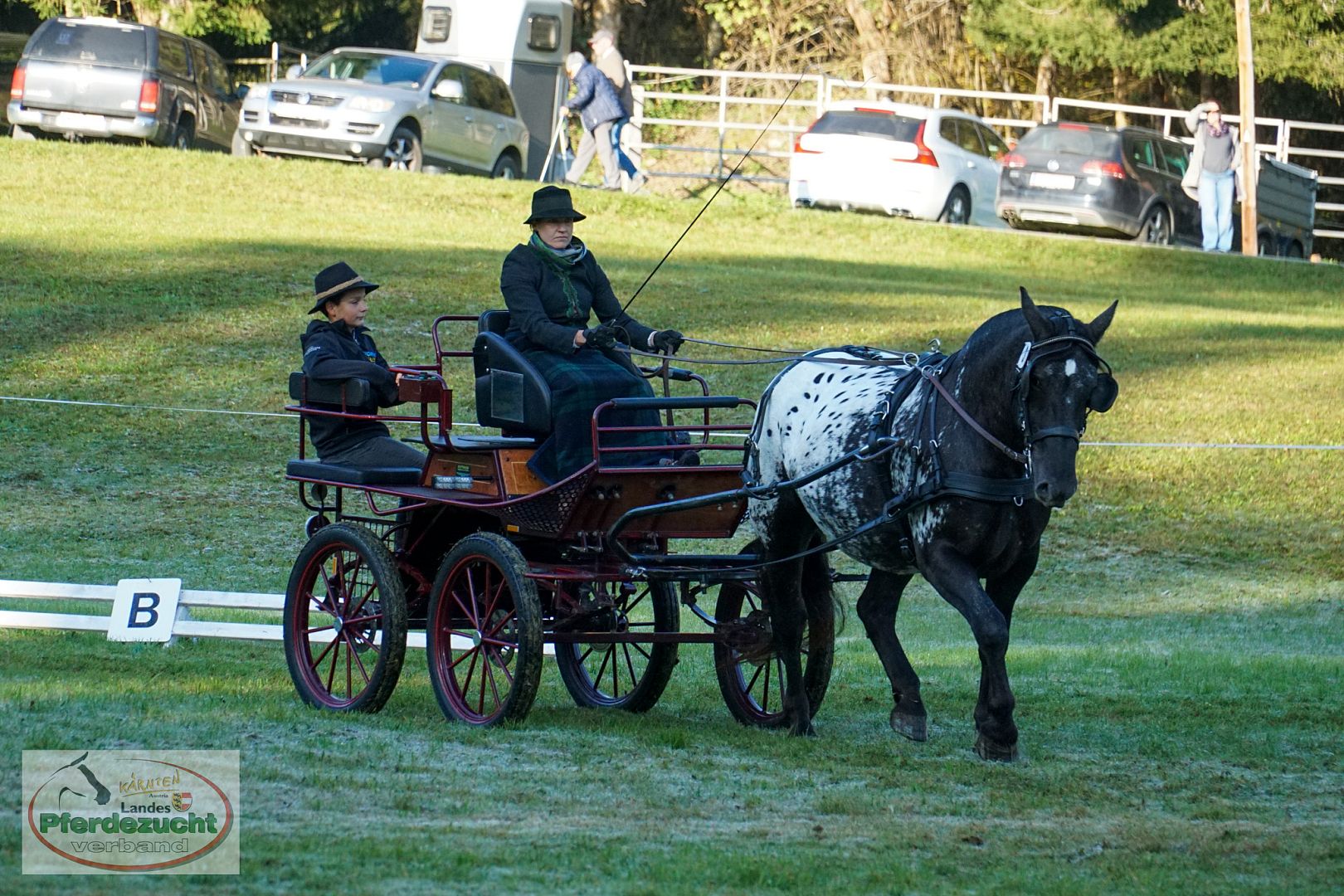Im ersten Teilbewerb wurden die Grundgangarten, somit die Bewegungsmechanik der Pferde unter dem Sattel beurteilt. Gerichtet wurde dieser Bewerb von Ing. Manfred Lientschnig, Mario Niederdorfer, Dipl.-Ing. Dr. Andreas Zettl und dem Geschäftsführer des LPZV Thomas Striedner. Christina Obernosterer fungierte abermals als Fremdreiterin und nahm den Fremdreitertest ab (Rittigkeit) – diese war von der heurigen, ausgeglichenen Grundqualität der Stuten mehr als begeistert! Im Anschluss wurden die Pferde von den Fahrrichtern – wie oben bereits erwähnt – bei der Einspännerfahrprüfung beurteilt.
