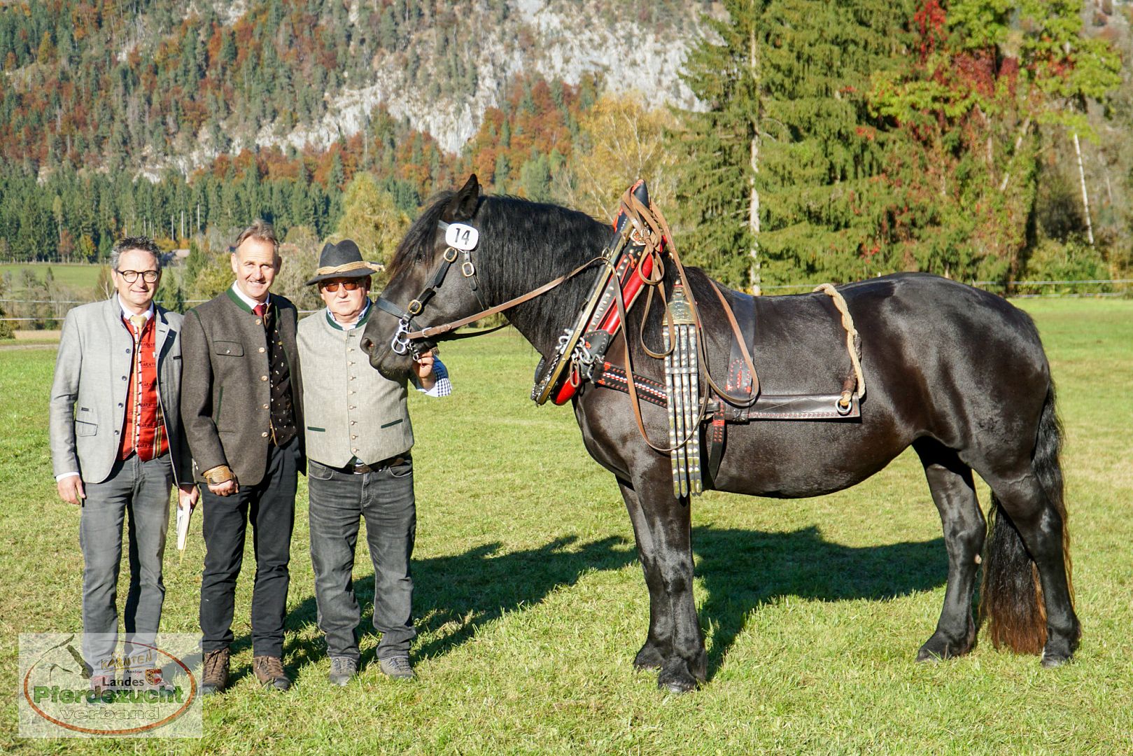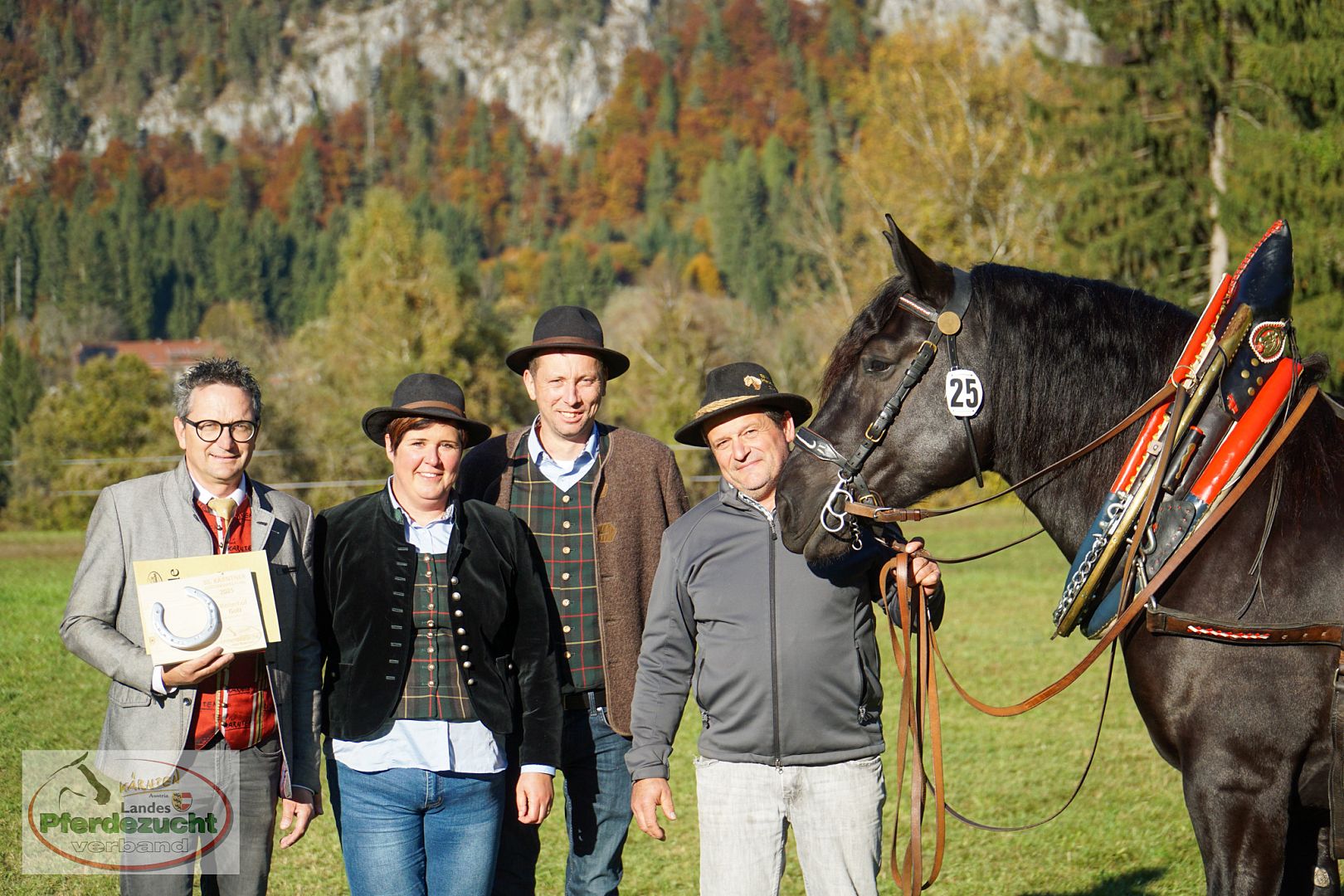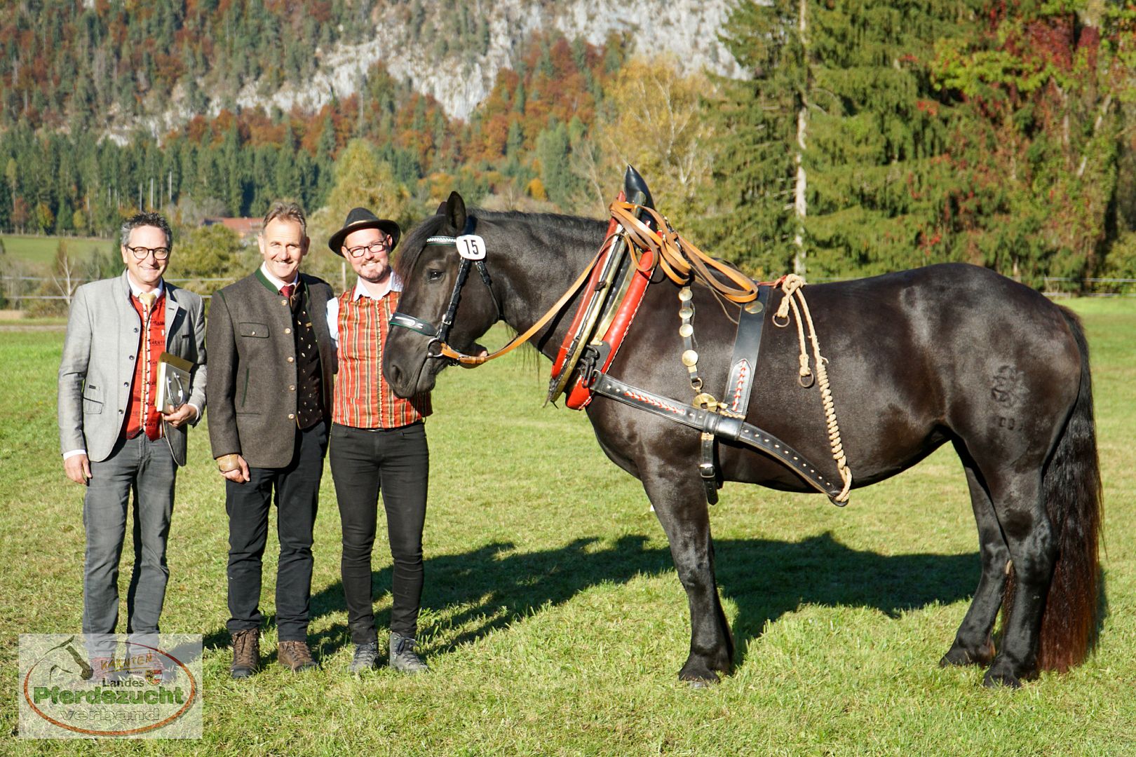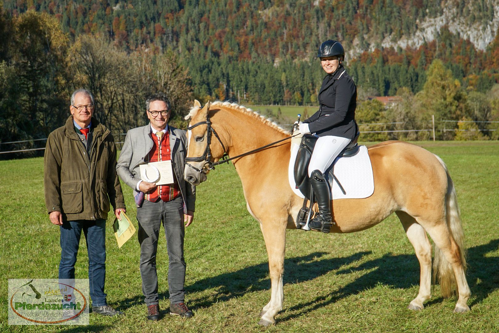 Im ersten Teilbewerb wurden die Grundgangarten, somit die Bewegungsmechanik der Pferde unter dem Sattel beurteilt. Gerichtet wurde dieser Bewerb von Ing. Manfred Lientschnig, Mario Niederdorfer, Dipl.-Ing. Dr. Andreas Zettl und dem Geschäftsführer des LPZV Thomas Striedner. Christina Obernosterer fungierte abermals als Fremdreiterin und nahm den Fremdreitertest ab (Rittigkeit) – diese war von der heurigen, ausgeglichenen Grundqualität der Stuten mehr als begeistert! Im Anschluss wurden die Pferde von den Fahrrichtern – wie oben bereits erwähnt – bei der Einspännerfahrprüfung beurteilt.