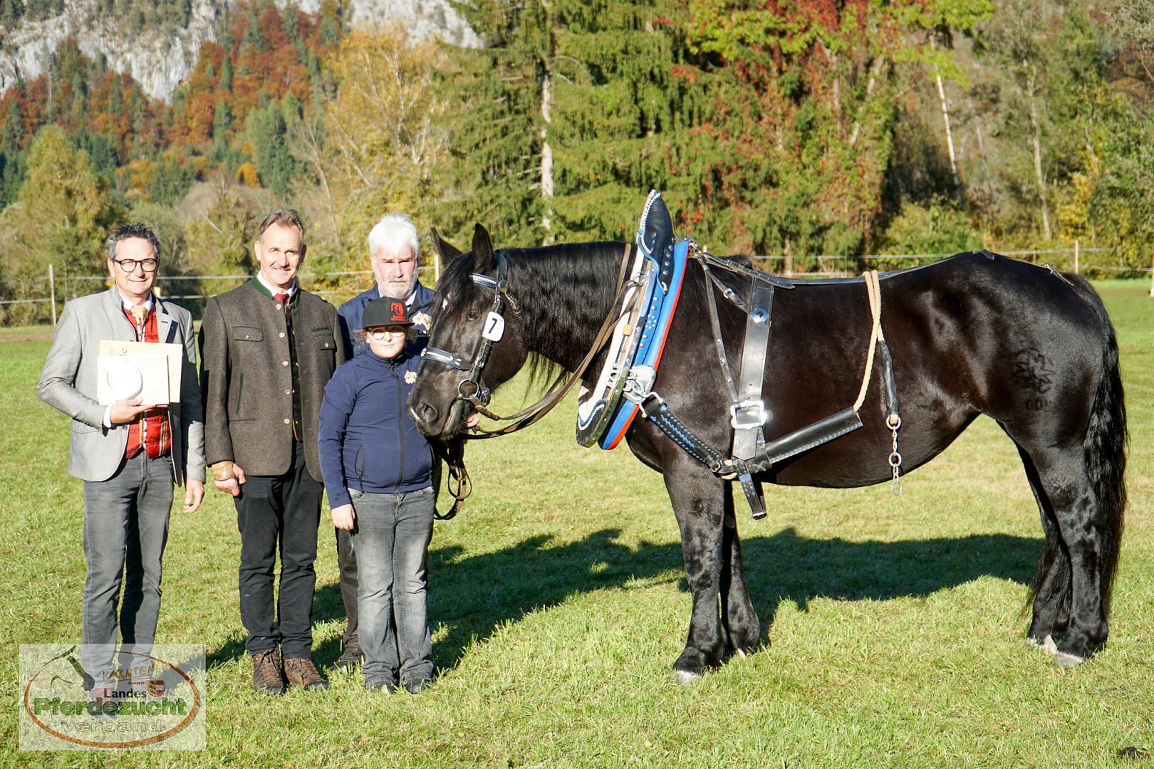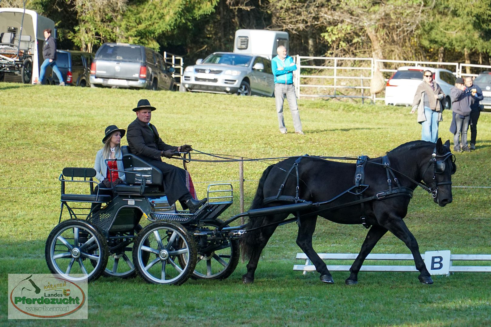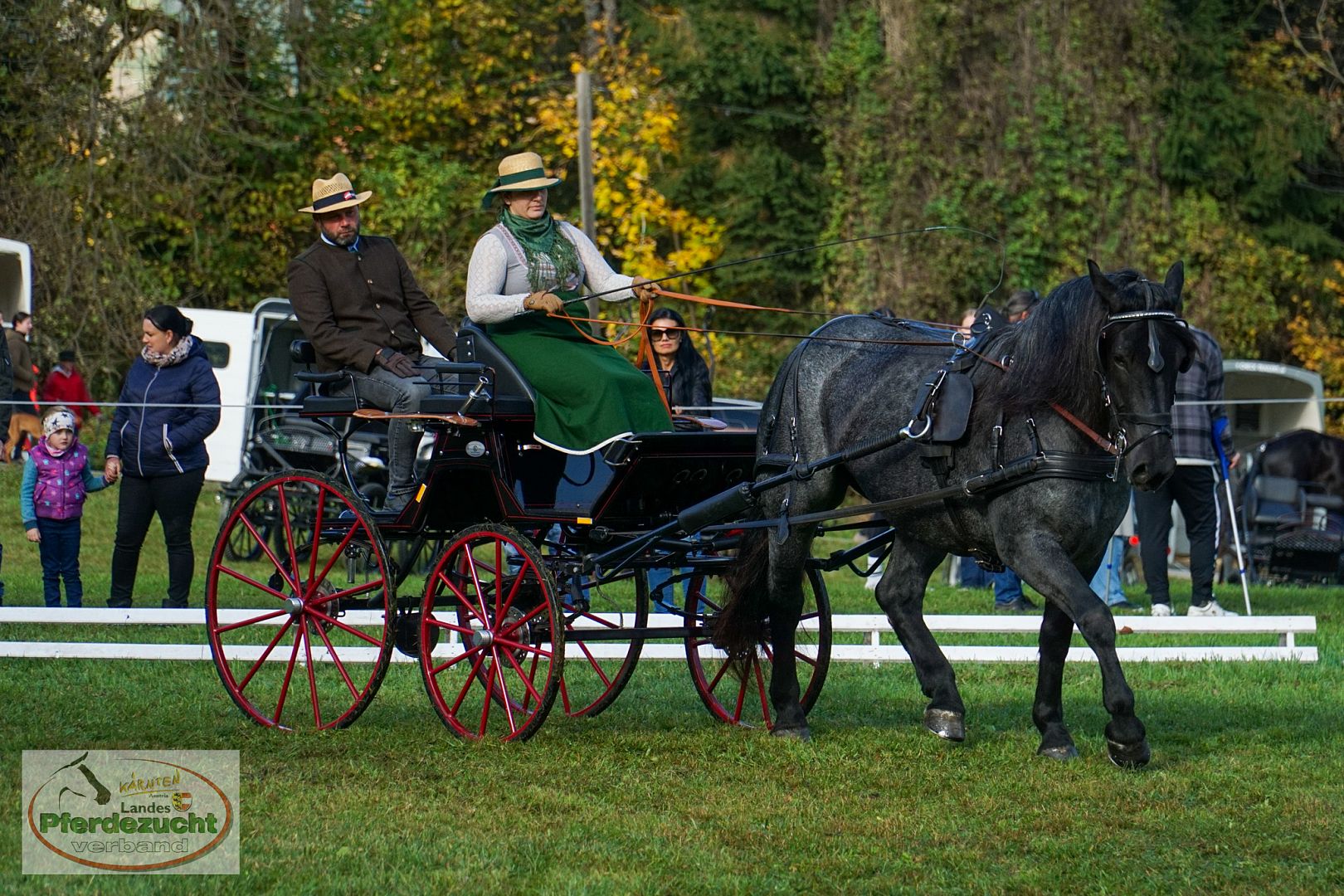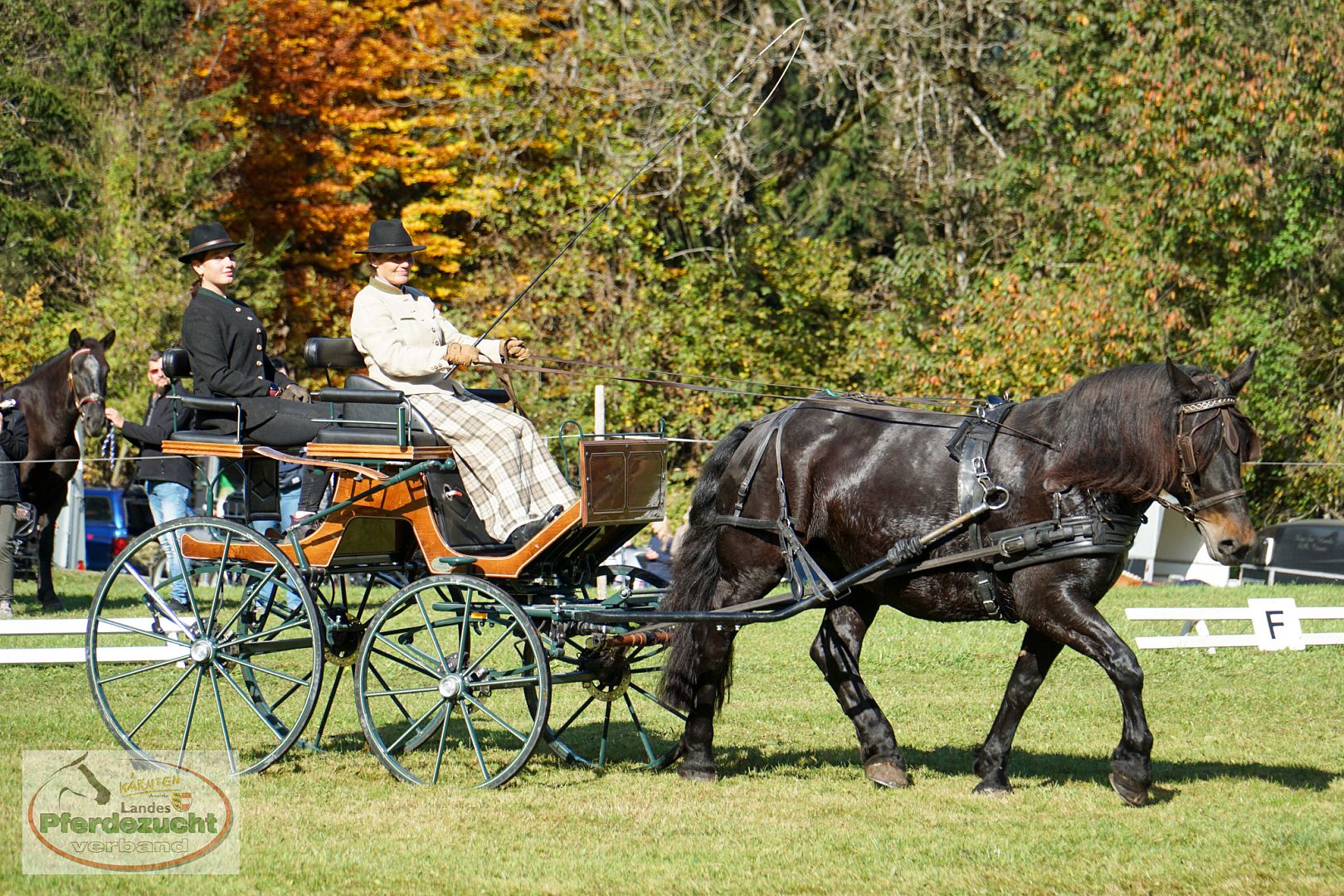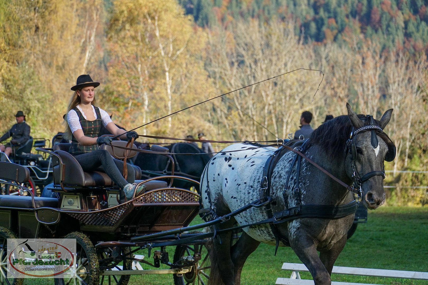 Die Siegerschärpe bei den Haflingern ging heuer ebenfalls nach Kötschach-Mauthen. Die BGM Burgstaller & Lamprecht absolvierte heuer mit ihren Pferden ein straffes und äußert erfolgreiches Programm. Den krönenden Abschluss schenkte ihnen aber ihre dreijährige Stute Lamina nach Prämienhengst Neugold aus der Lakrima gezogen. Die Landesschauteilnehmerin 2025 holte sich bei der heurigen Weltausstellung im Juni schon die Schauklasse 1a und bei der ARGE Haflinger Bundesjungstutenschau im September die Schauklasse 1b. Lamina stammt aus der Zucht von Werner Glantschnig, Obervellach und steht im Besitz der BGM Burgstaller und Lamprecht, Kötschach-Mauthen. Sie wurde von Marina Kalt sehr gut unter dem Sattel vorgestellt – vor allem die Rittigkeit dieser Stute wurde hervorgehoben. Eindrucksvoll war aber auch die Präsentation vor der Kutsche, am Kutschbock Peter Ladstätter. Mit viel Aufrichtung, Fleiß und sehr schwungvoll zeigt sie sich hier. Mit dieser Vorstellung erreichte dieses Team die Höchstnote an diesem Tag – 8,64. Arbeitswillig, gelehrig und nervenstark – eine würdige Siegerstute.