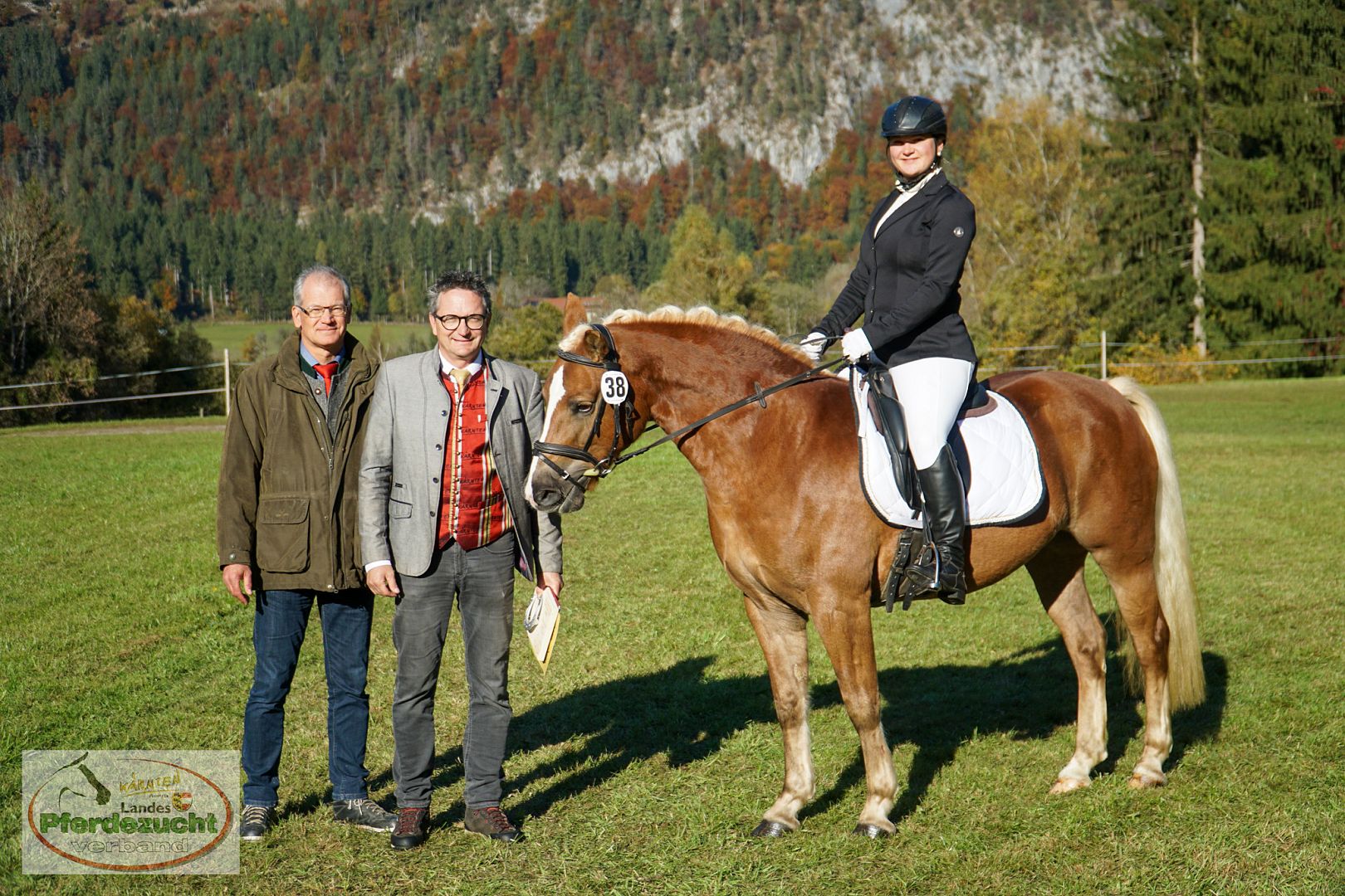 An die dritte Stelle mit einer Wertnote von 8,49 setzte sich eine Stale-Tochter. Lucy Lou, aus der Zucht und im Besitz von Alfred Hicks, Riegersdorf, wurde unter dem Sattel sehr gut von Melanie Wassertheurer vorgestellt. Vor der Kutsche wurde sie von Andreas Reibnegger präsentiert. Die beiden erreichten für die harmonische Vorstellung überdurchschnittliche Einzelnoten und somit den hervorragenden dritten Platz.