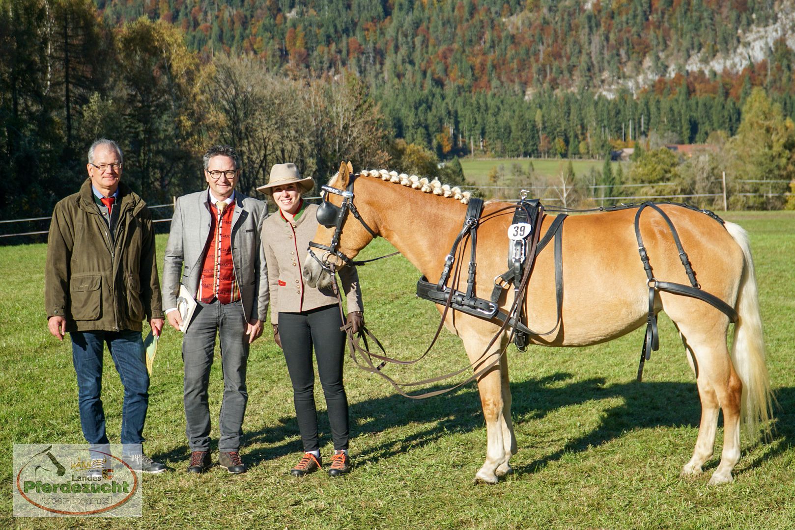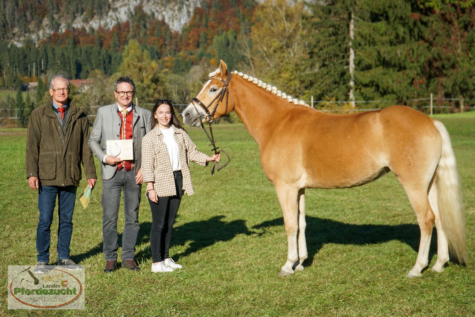 Bei den Haflingern ist Spitzenreiterin die Staatsprämienstute Thorina nach Atlantis (Z. u. B.: Ing. Manfred Lientschnig) mit der hervorragenden Wertnote von 9,11.