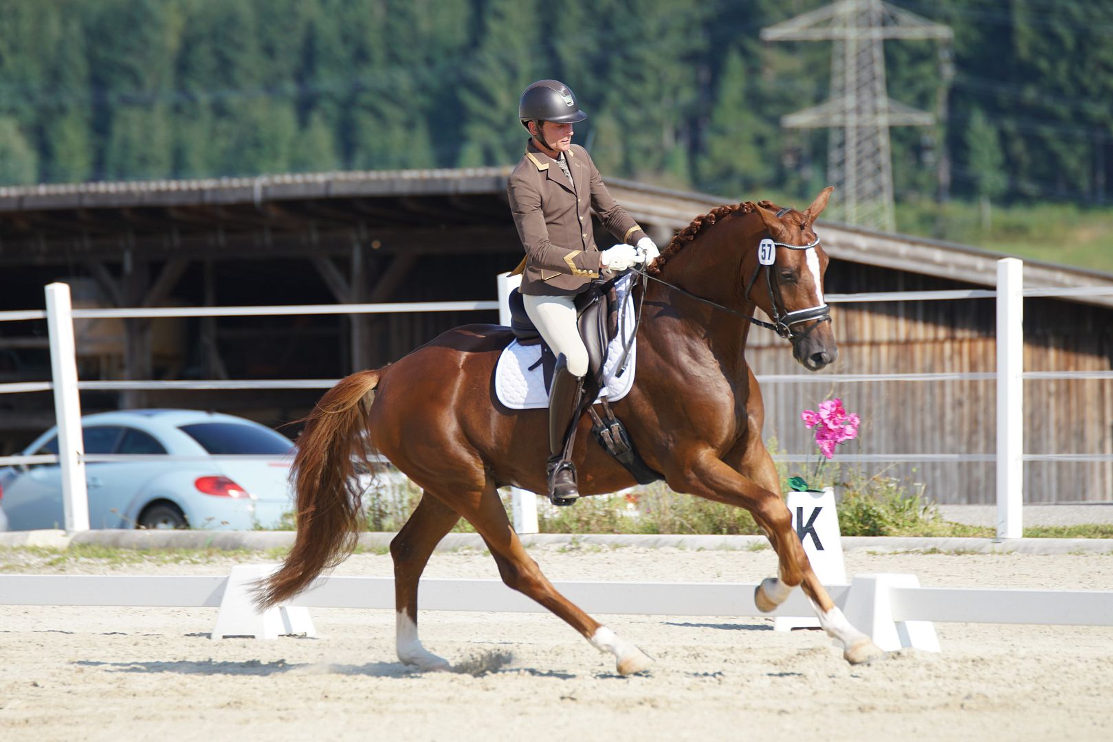 Der Sieger bei den dreijährigen Warmblutpferden kommt aus der Zucht und steht im Besitz der Fam. Ahorner, Wien. Der schön gefärbte und sehr gefällige Fuchswallach Taycan, nach Totilas über Hochadel/Wolkentanz I gezogen, wurde unter dem Sattel von Michal Kostal bestens präsentiert. Mit guten bis sehr guten Einzelnoten bestach der junge Wallach vor allem mit einem schreitenden, taktsicheren, und gelassenen Schritt und präsentierte sich stets konstant in der Anlehnung und an den Hilfen seines Reiters. Die beiden bekamen für ihre Vorstellung eine sehr gute Wertnote von 8,3 und die verdiente Siegerschärpe.