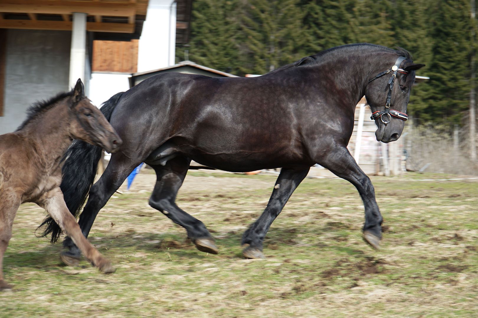 Eine davon, die Rappstute Melitta, wandelt bereits in den Spuren ihrer erfolgreichen Mutter. Die sehr rassetypische und harmonische Tochter des Hain Vulkan XVII überzeugte letztes Jahr auf ganzer Linie und kürte sich zur Landessiegerstute 2020. Melitta qualifizierte sich ebenfalls für die ARGE Noriker Bundesjungstutenschau 2020 und holte sich die nächste Schärpe ab. Mit der höchsten Schauklasse 1a ausgezeichnet wurde sie zur Gruppensiegerin der dreijährigen Stuten auserwählt. Melitta hat ebenfalls schon ihr erstes Fohlen n. Eisenhut Nero XIV bei Fuß und fehlt ihr somit nur noch die erfolgreiche Absolvierung der Leistungsprüfung, damit auch sie den Titel Staatsprämienstute tragen darf.